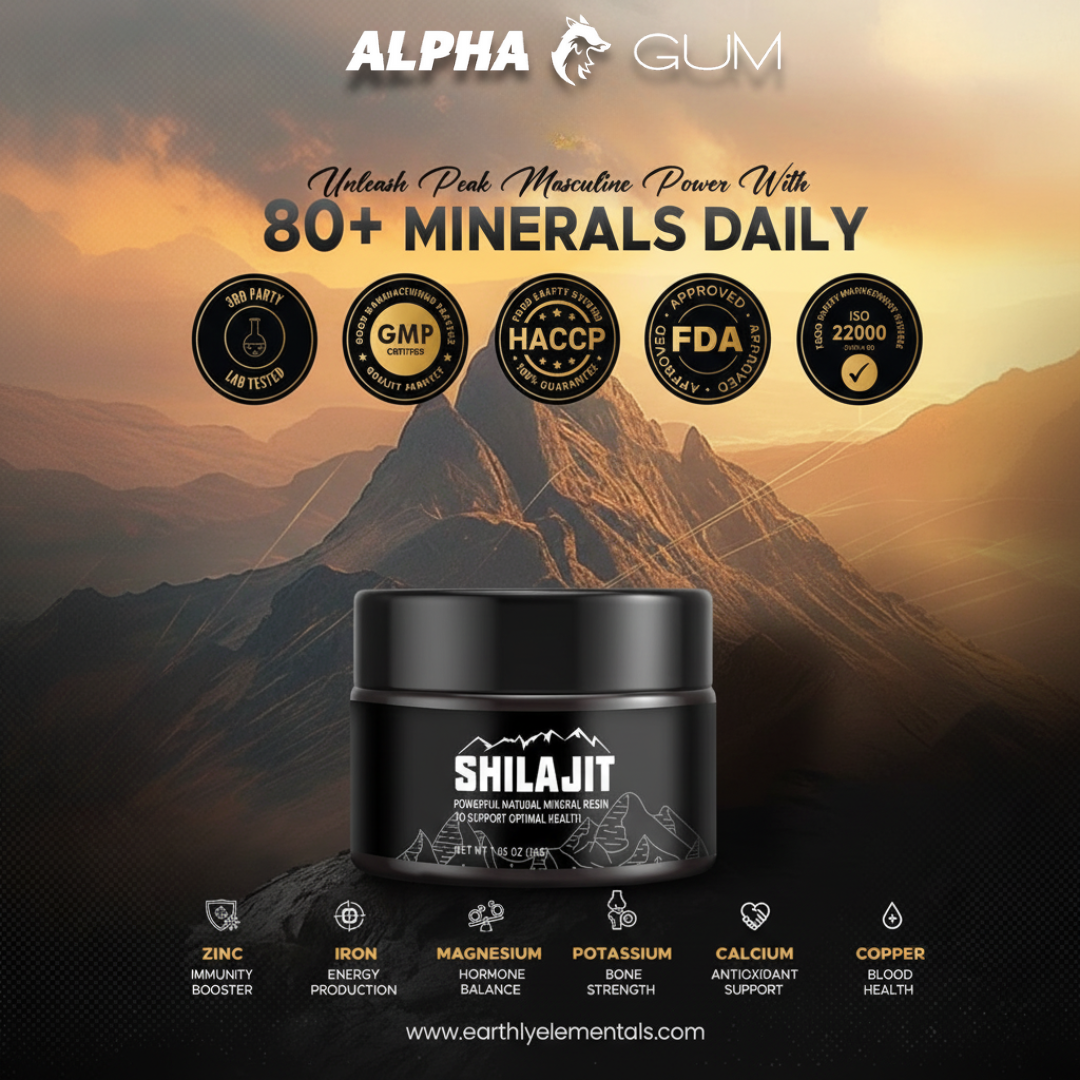 Alpha Gum Performance Gummies are naturally formulated gummies designed to support men’s overall wellness and daily vitality. Each serving provides a clean, lab-tested source of Shilajit, known for its rich mineral content and traditional use in promoting energy and balance.